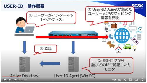 参考 Active Directoryを用いたユーザー識別機能のご紹介【次世代ファイアウォール】 - YouTube ポイント 上記URLより引用 User-ID AgentがADからユーザー名とIPアドレスの情報を持ってきて、FWに反映する。 ※DHCPでIPが変わっても追跡可能FWはユーザー名で…