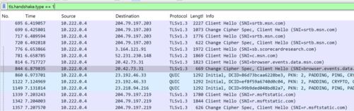 ブラウザなら開発者ツールで見れる。 ただ、365 Appsとか、どこにつながってるか分からない。TLSでもSNIで接続先URLのホスト名は分かる。 これをWireSharkのディスプレイフィルタを使って、いい感じに表示するための方法を考える。 ディスプレイフィルタにこ…