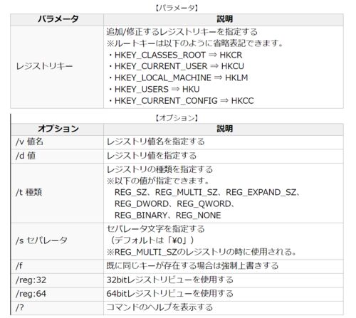 PowerShell PowerShellによるレジストリの操作例 #Windows - Qiita reg add reg add - Windowsコマンド虎の巻 上記URLより表を引用